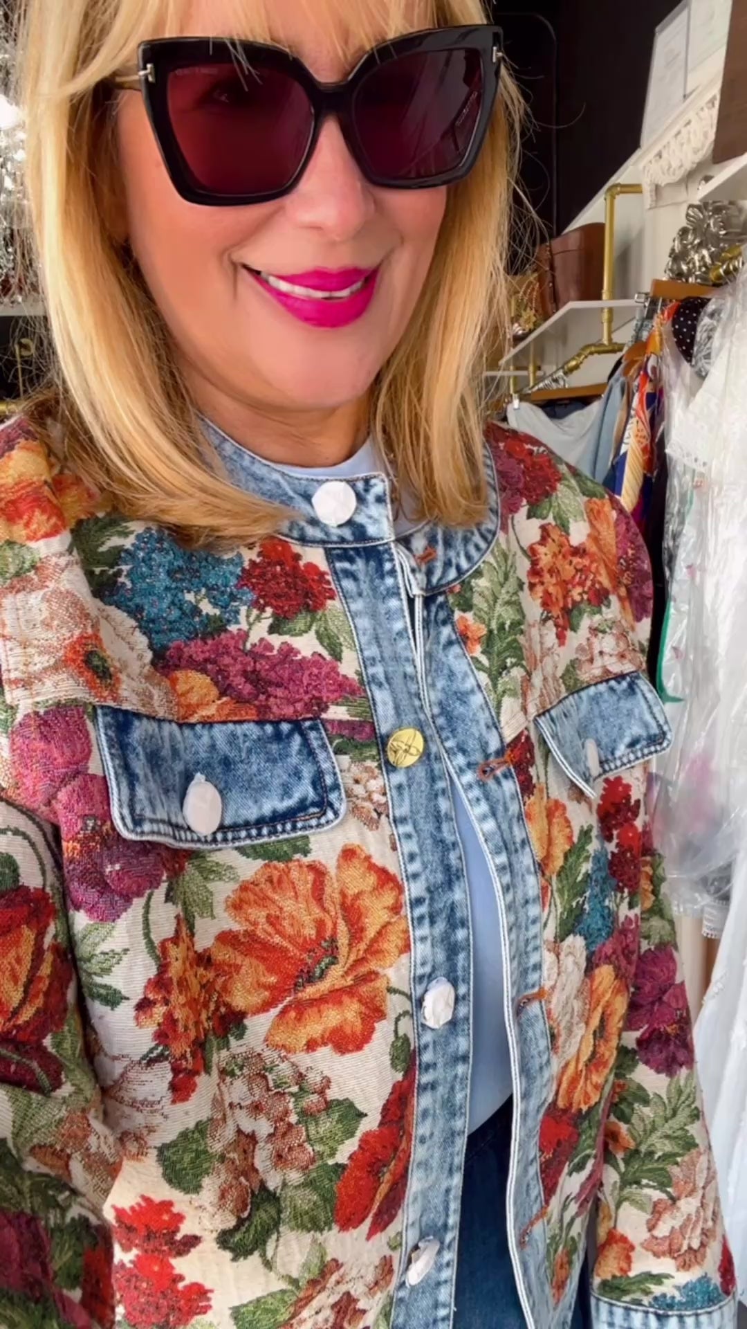 Floral Tapestry Denim Jacket: Vintage-Inspired Artistry for Everyday Versatility! - Bella Boutique & Bellasbylola.com