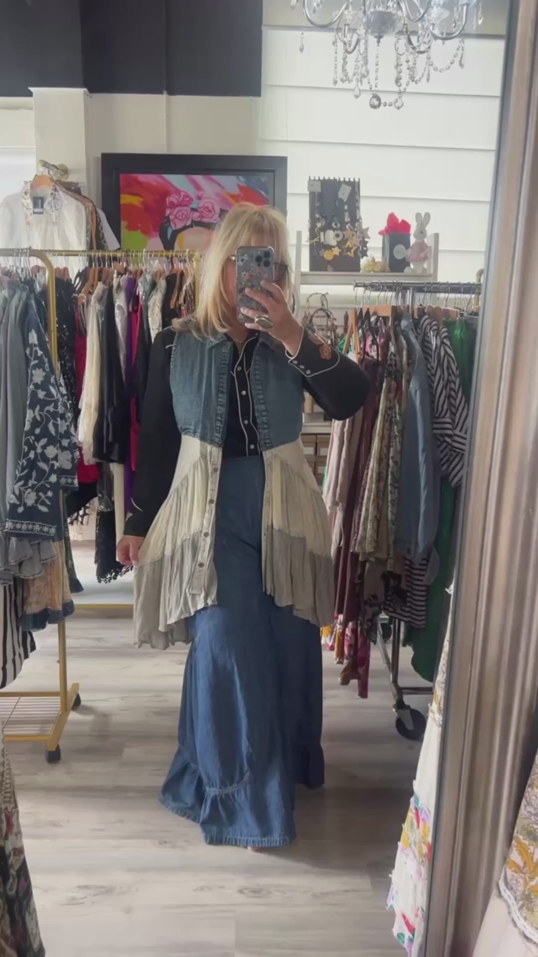 Denim & Beige Asymmetrical Hi Low Vest - In Store & Online - Bella Boutique & Bellasbylola.com