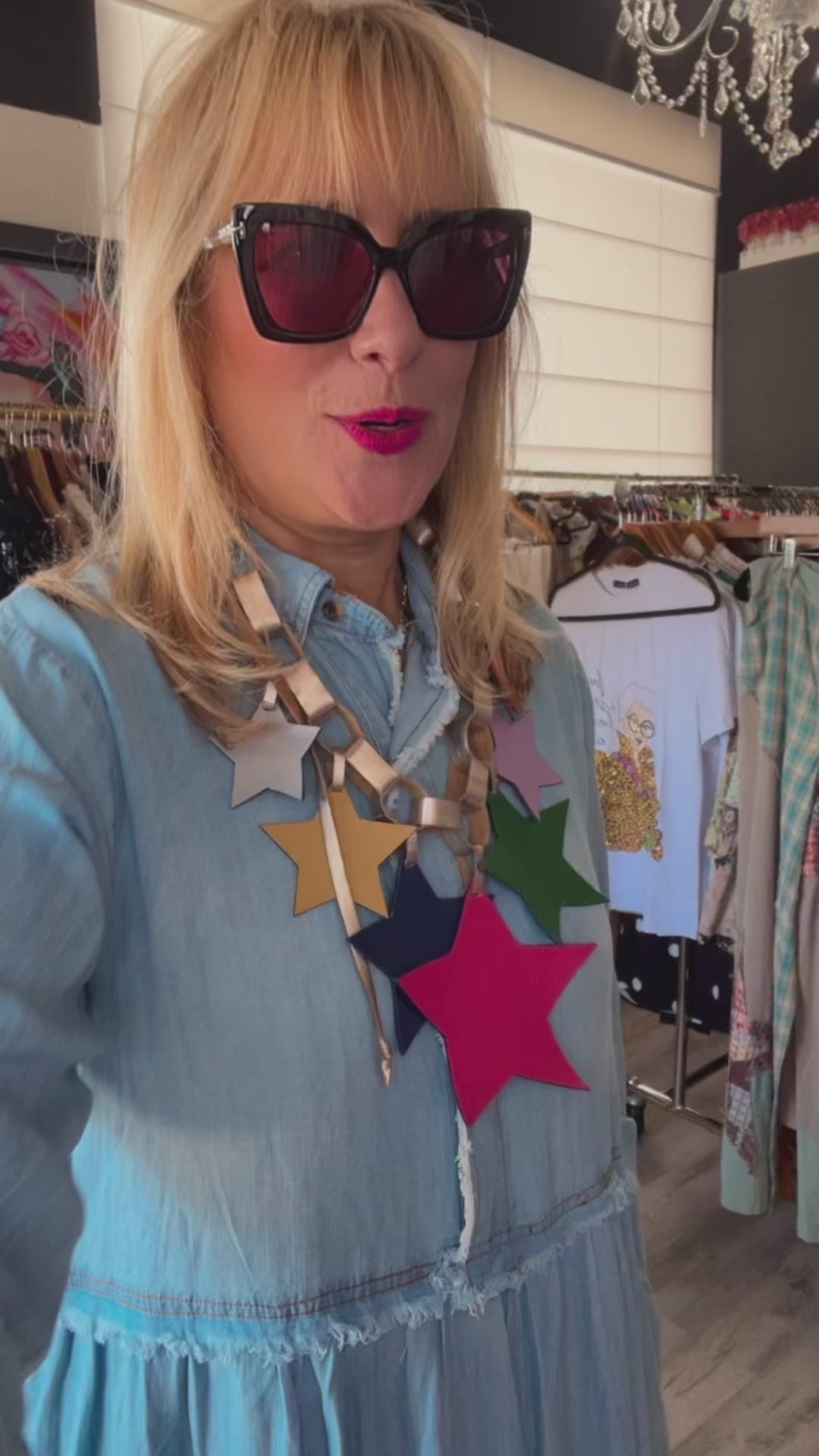 Description: BUTTON FRONT WASHED DENIM LONG DRESS