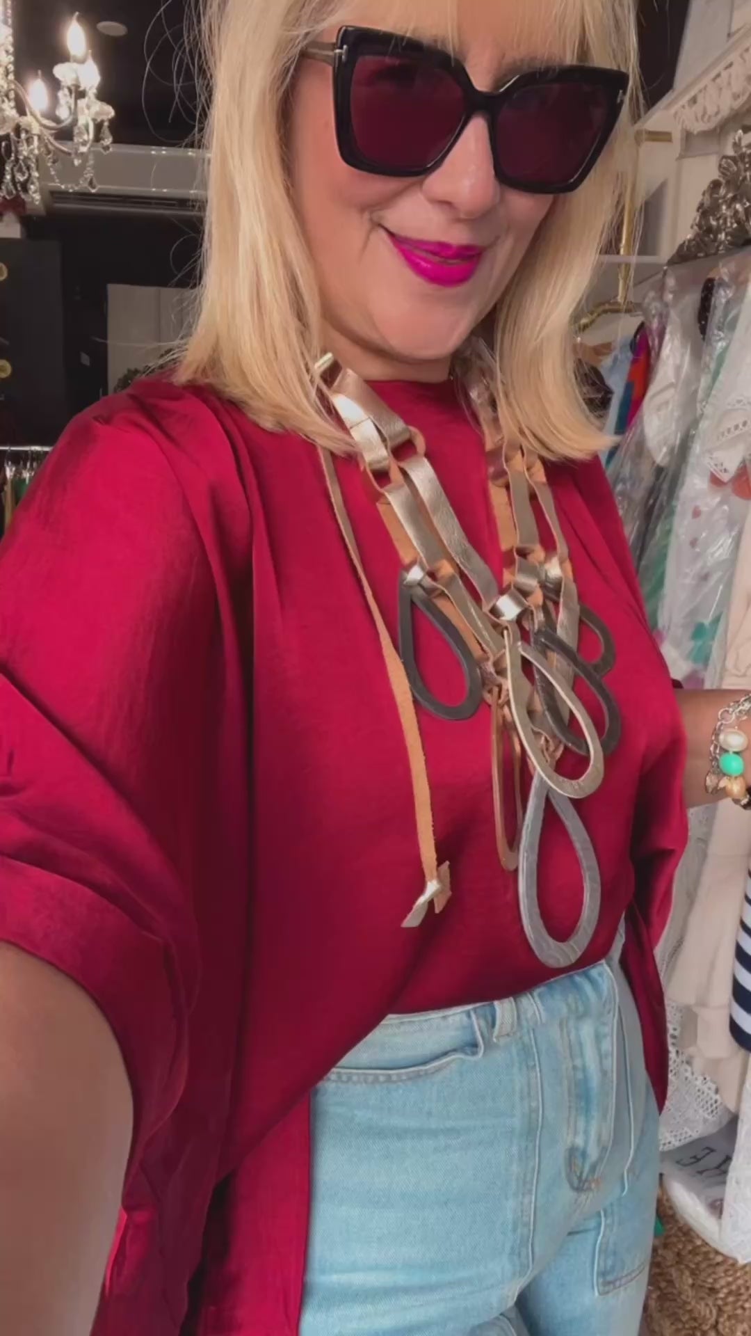 Burgundy Satin Tunic 3/4 Sleeve Blouse - True to size